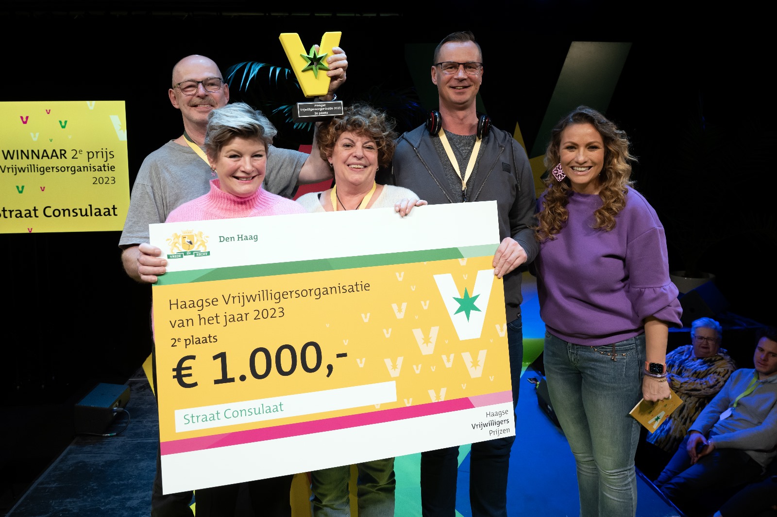 Yes, de vrijwilligers van Straat Consulaat hebben een prijs gewonnen! Op 25 november hebben Arnold, Rudolf en Thecla de prijs in ontvangst genomen van Mariëlle Vavier van de gemeente. Behalve eer hebben we ook 1000 euro gewonnen. Het geld is voor jullie, lieve vrijwilligers! Je kunt ideeën voor wat we gezamenlijk met het geld kunnen doen bij mij inleveren.