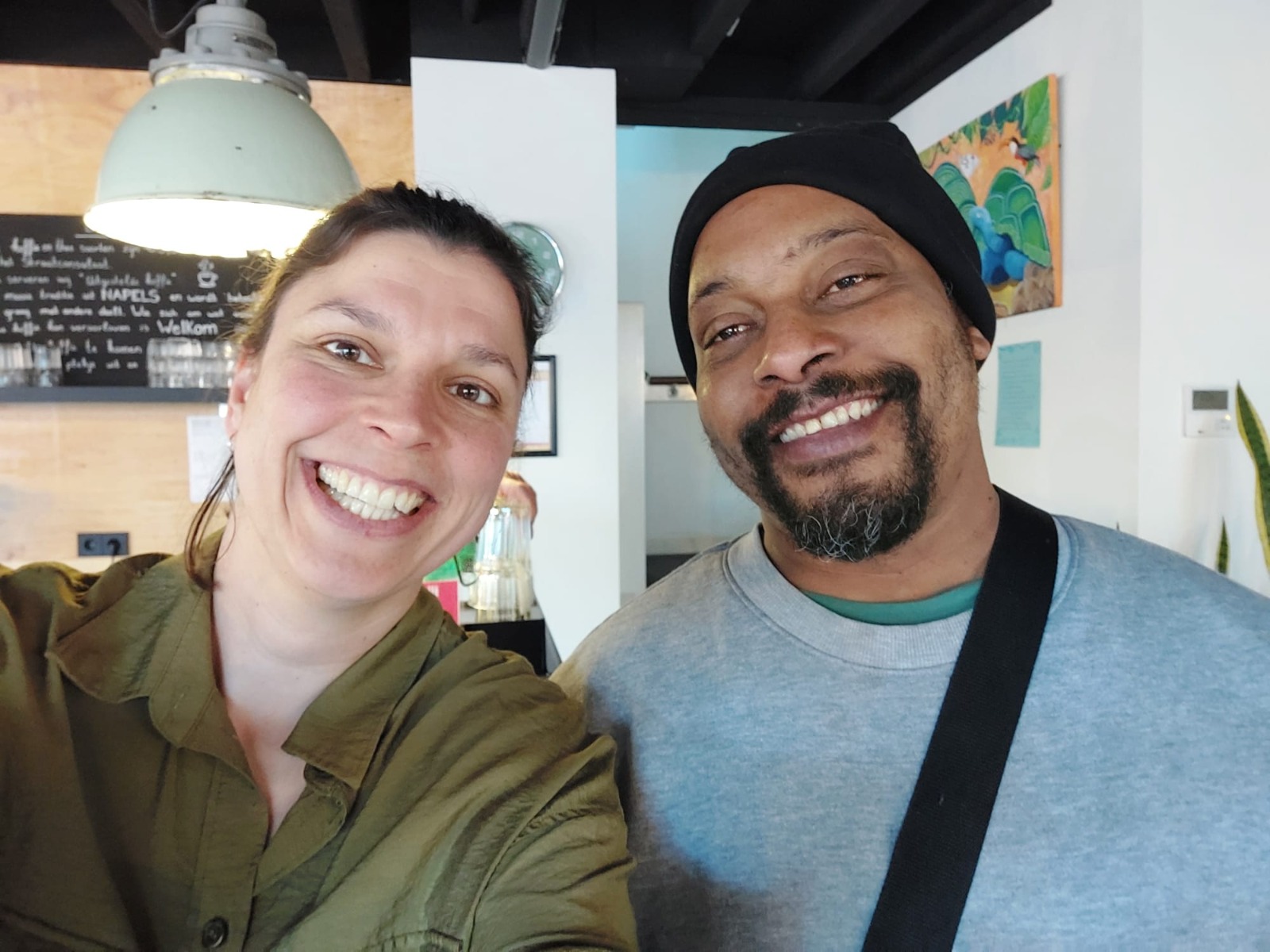 Ik was toen onder andere persoonlijk begeleider van Raygene, een stille, verlegen jongen van 20 jaar. Nu bijna 20 jaar later, hebben Raygene en ik elkaar weer ontmoet in de stad en komt Raygene regelmatig in de koffiebar even een bakkie met mij doen. Zo bijzonder! Inmiddels zijn we dus een heel stuk ouder en Raygene is zeker niet stil en verlegen meer! En zo ontmoet ik na jaren ook andere mensen opnieuw en dat is eigenlijk altijd een warm terugzien.