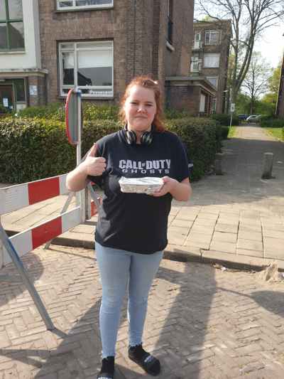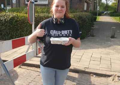 Donderdag 16 april stond er ‘kip cashew met rijst en groente’ op het menu. Medewerker Jeroen Melchior is vervolgens bij 21 adressen langs geweest, waar hij op afstand de maaltijd heeft kunnen overhandigen. De vrijwilligers waren erg blij met zijn komst en maaltijd. Even een praatje en daarna heerlijk eten.