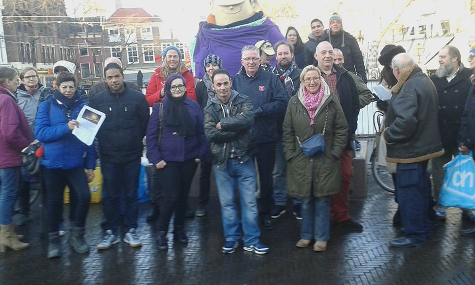 Actie voeren bij het beeld van Haagse Harry.